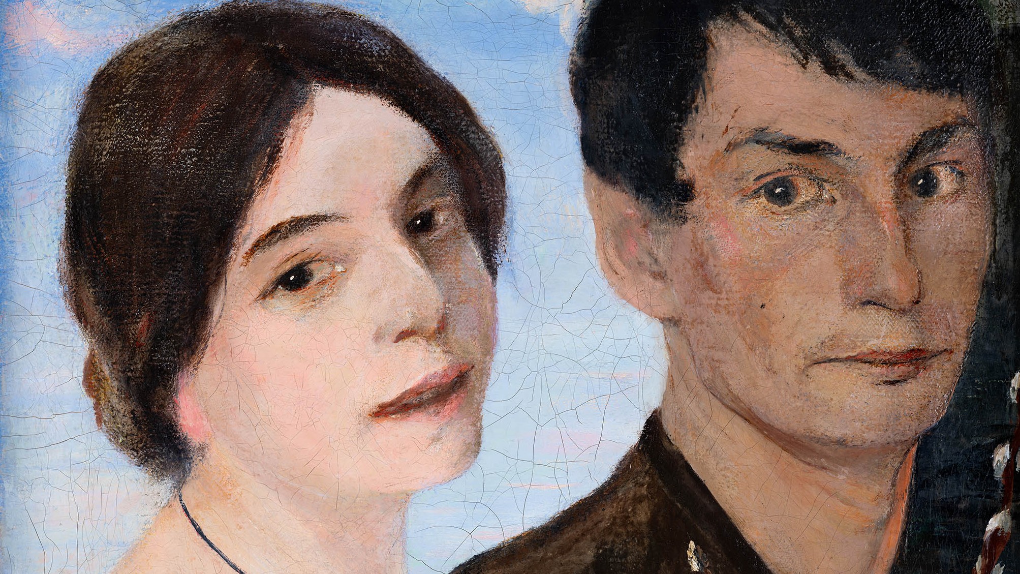 Na autoportrecie Otto Mueller (1874–1930) widnieje ze swoją młodą żoną Maschką. Jest to jedna z niewielu zachowanych wczesnych prac tego najsłynniejszego malarza śląskiego modernizmu. Obraz powstał zapewne w jego rodzimych Karkonoszach, gdzie oboje kilka lat mieszkali. Mueller bywał często wśród artystów skupionych wokół pisarzy, braci Carla i Gerharta Hauptmannów, z którymi był spokrewniony.